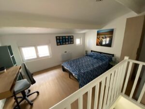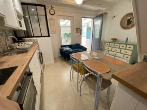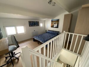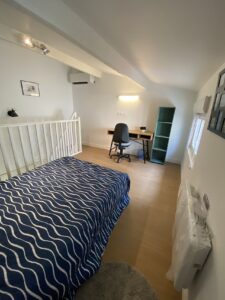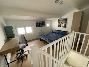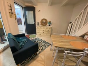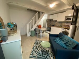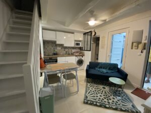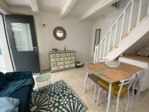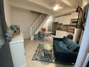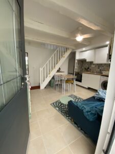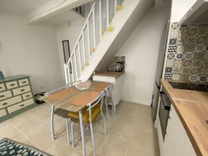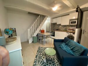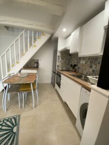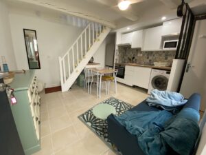Appartement-maison duplex sans voisin a l’étage, idéalement remis à neuf, situé au calme. Chambre équipée d’un grand lit et de meubles de rangement. Cuisine équipée d’un frigo, four à micro-ondes, plaques électriques pour cuisiner, rangements pour cuisine. Salle de bain avec baignoire, douche et lavabo + toilettes. Appartement totalement équipé ! Vous n’avez qu’à vous installer.